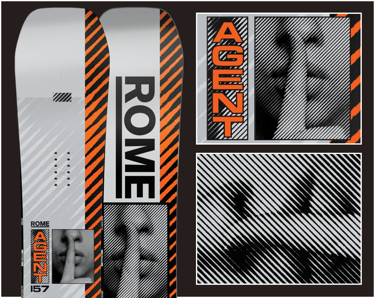 The Agent is a true heritage board for Rome. Built with the ride-anything sensibilities of Fusion Camber, a lively and responsive flex profile, and, now, upgraded with Double Kick in the nose and tail for locked-in presses and stability to ride out of sketchy landings. This True Twin is built around the idea that responsive boards make everyone a better rider.