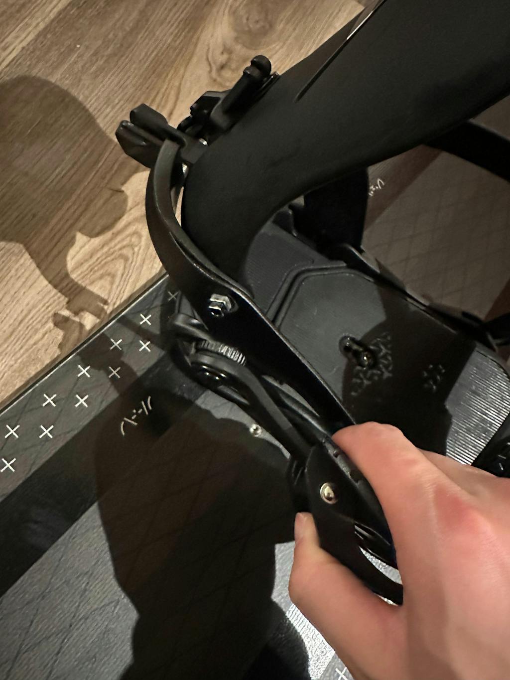 Because the ankle ladder strap is already engaged, only one hand is required to strap in to your preferred flex.